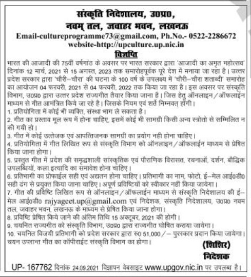 उत्तर प्रदेश दिवस (24-26 जनवरी 2022)
