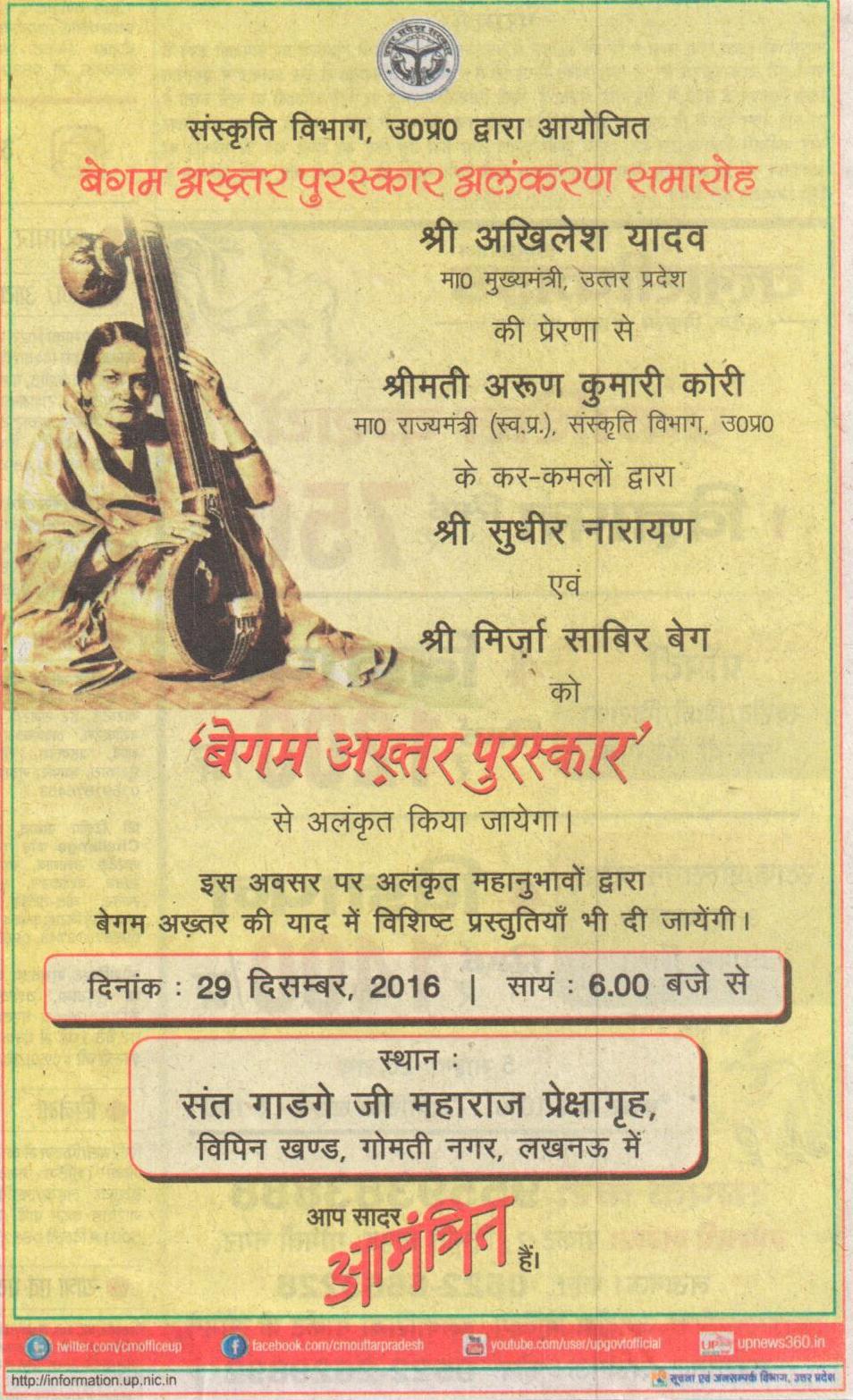 पीटी। छन्नूलाल मिश्रा की स्थापना यूपी संगीत नाटक अकादमी, लखनऊ में हुई